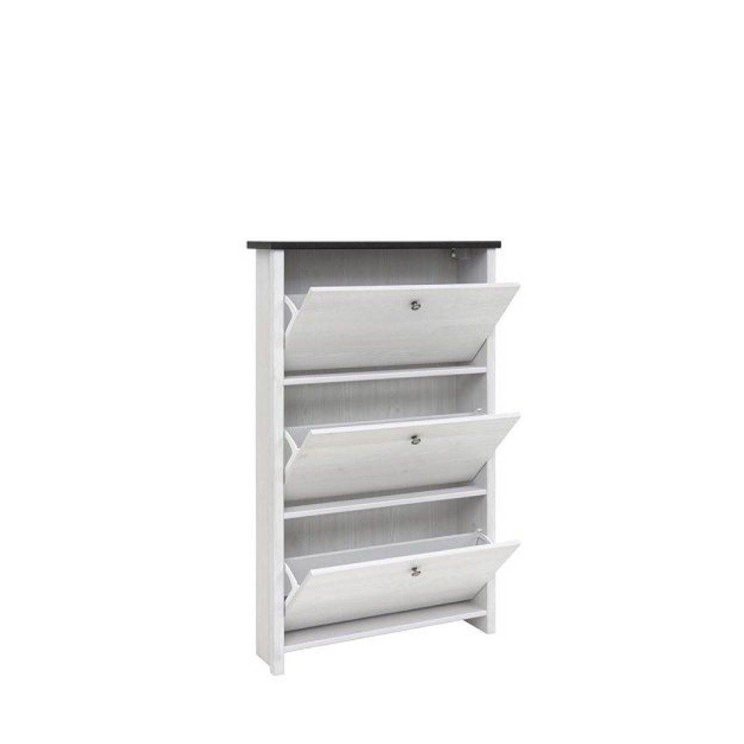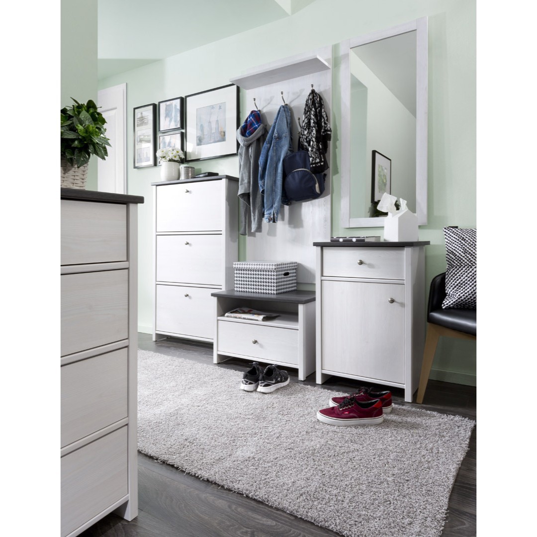 Chodba je vizitkou domu. Proto se snažíme, aby už od prahu zanechal interiér dobrý dojem. Pořádek pomůže zachovat funkční výklopný botník PORTO II NEW 023 v barevném provedení modřín světlý, s horní deskou v barvě borovice larico, kterou lze využít jako odkládací plochu...