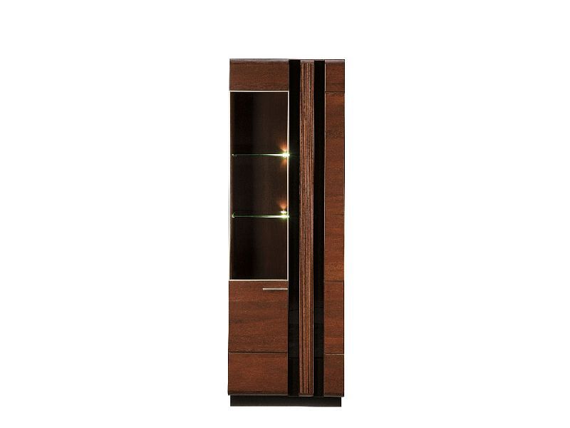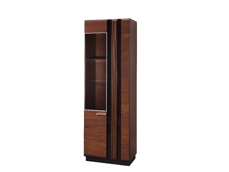 Tato vitrína je vhodná pro všechny, kteří hledají luxusní a nevšední design nábytku. Barevné provedení je dub antický/černé sklo. Modulový systém PORTUGAL kombinuje korpus - zevnitř lamino, zvenčí dubová dýha a dvířka z masivu dub.
