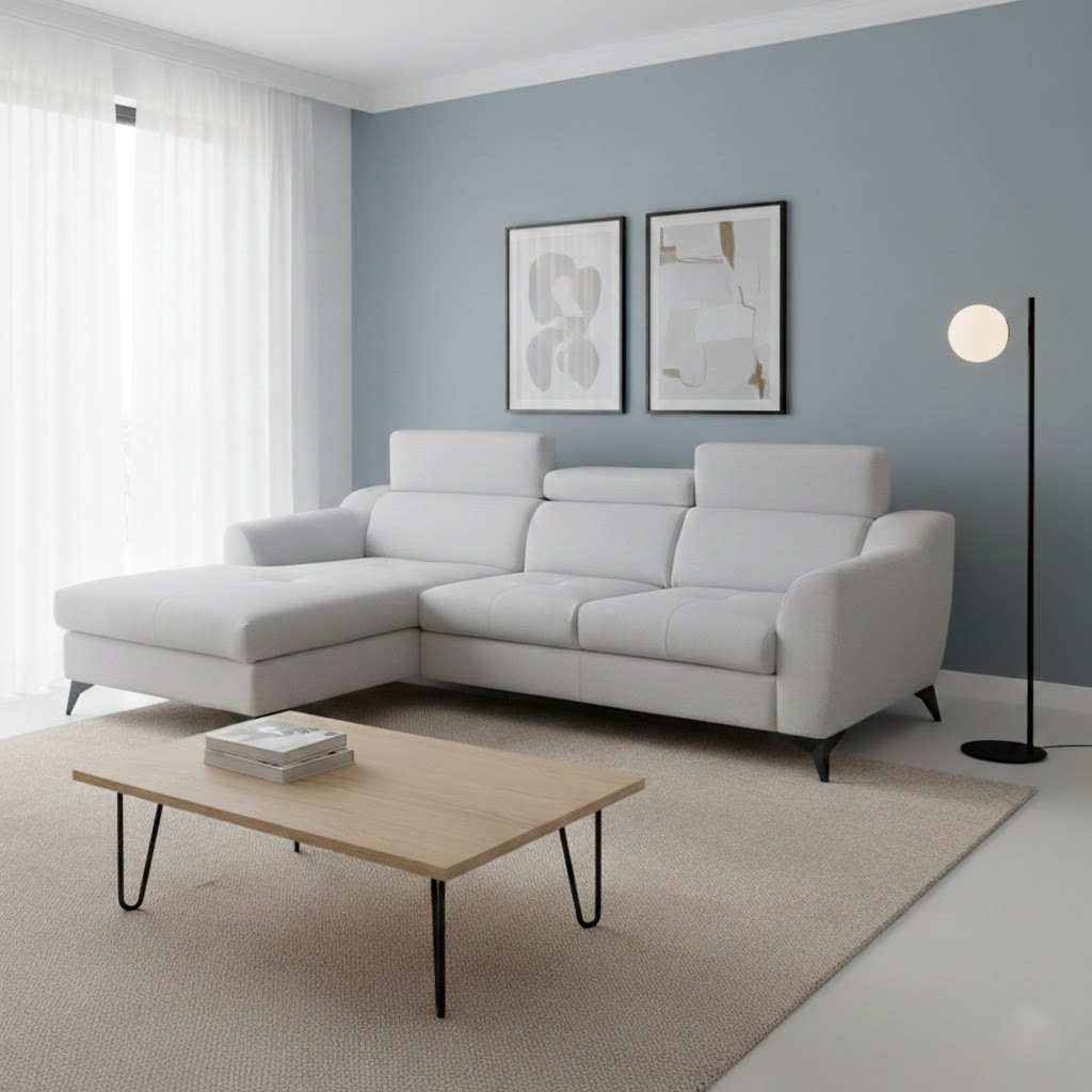 Sedací souprava PRESTIGE nabízí designové místo k sezení. Nemá rozklad, ani úložný prostor. Sedačka je v pravém rohovém provedení - z pozice sedícího...
