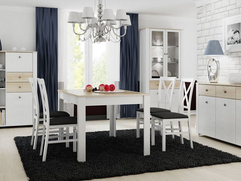 Jídelní židle PROVANCE vyniká svým nadčasovým designem, který snadno začleníte do každého interiéru. Polstrovaný, čalouněný sedák je v šedém tónu a vytváří svěží a vzdušný dojem. Konstrukce dřevo masiv buk - moření bílé barvy.