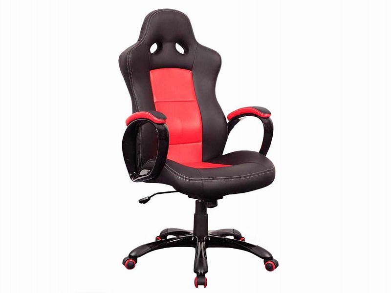 Podstavec a opěradla jsou z kovu, čalounění je vyrobené z eko-kůže v kombinaci černé a červené barvy. Výška sedadla je v rozmezí 43 - 52 cm, celková výška je 122 - 132 cm. Hloubka sedu je 52 cm.