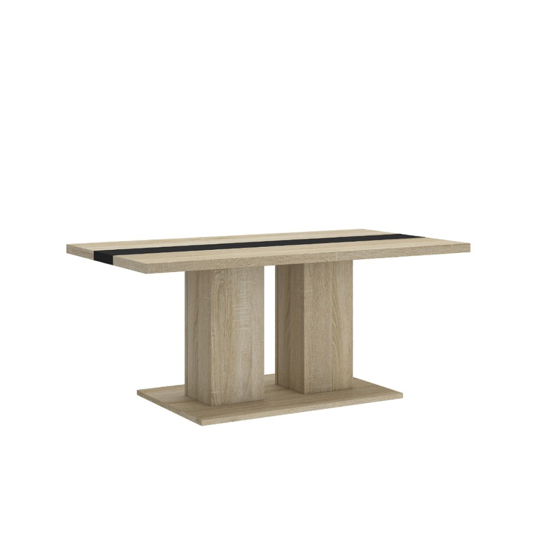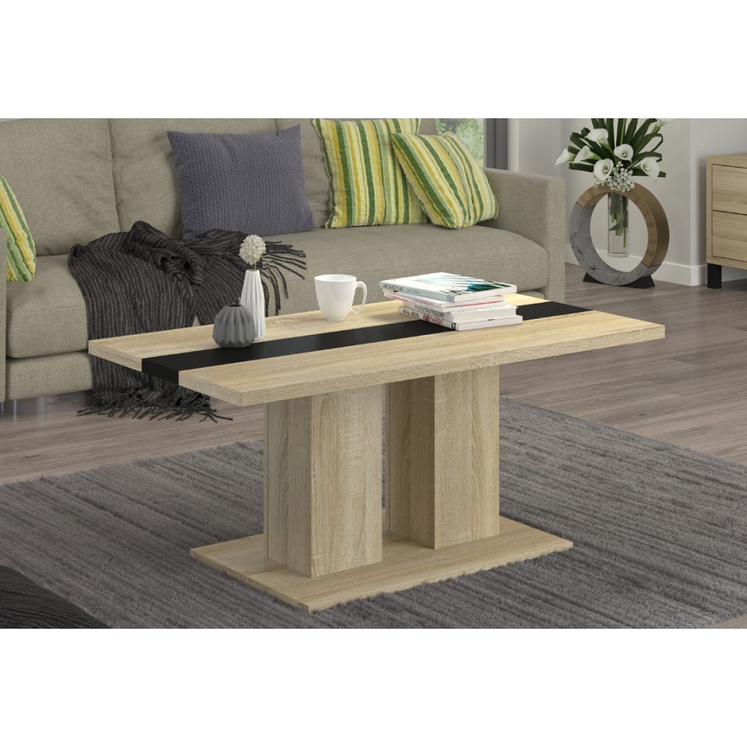 Vyroben z lamina v oblíbeném dekoru dřeva dub sonoma, což mu dodává přírodní a elegantní vzhled. Součástí vrchní desky je černý dekorační pruh, který podtrhuje moderní charakter.