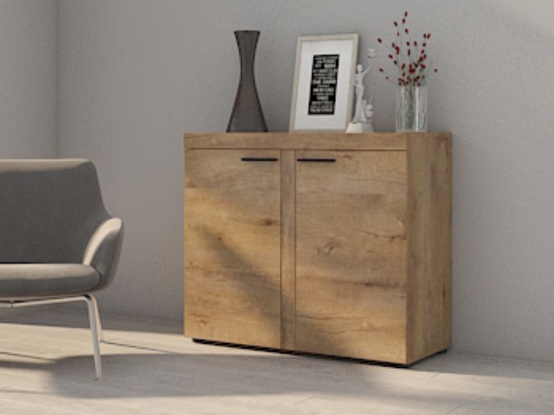 Komoda Robben 2F je vyrobena z lamina, které se snadno udržuje. Barevné provedení je v moderním zpracování dub lefkas.