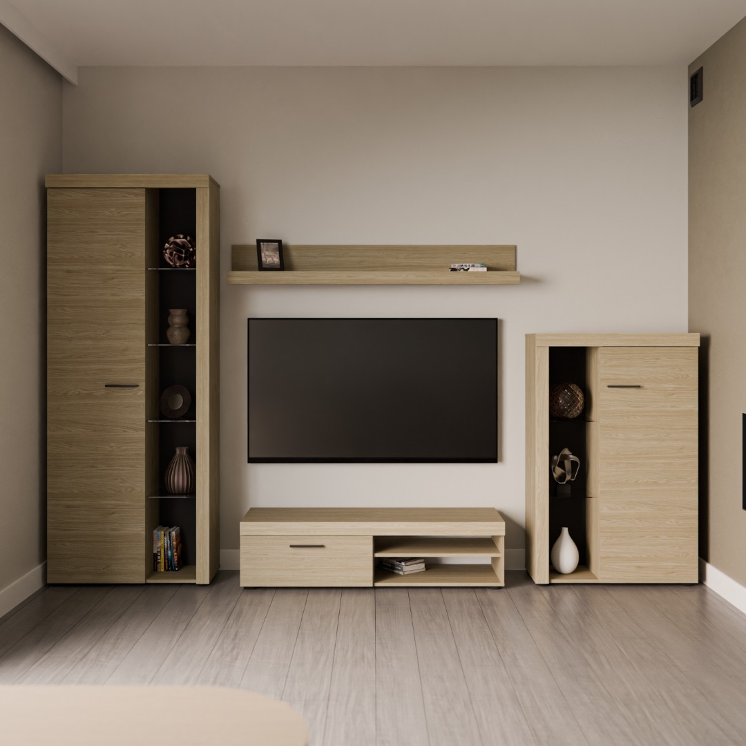 Dodejte svému obývacímu pokoji nový impulz s nábytkem, který spojuje moderní design, čisté linie a eleganci. Obývací stěna ROBBEN okamžitě zútulní váš domov a díky široké paletě barevných dekorů se dokonale přizpůsobí vašemu vkusu. Obývací stěna Robben je vyrobena z lamina v barevném provedení dub olej. Vitríny mají skleněné police, které jsou otevřené. Za plnými dvířky se poté nachází police z lamina...