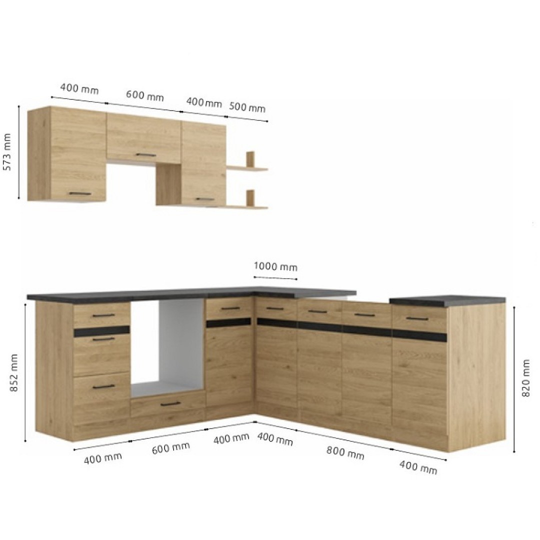 Sestava nemá v ceně pracovní desky. Ty je možné zakoupit zde v různých barvách a délkách. Dřezy naleznete zde. Hledáte kuchyň, která maximálně využije dostupný prostor a zároveň působí vkusně a moderně, rohová sestava Junona 4 je ideální volbou. Díky promyšlenému rohovému uspořádání nabízí pohodlí při každodenním vaření a dostatek úložného místa pro všechny nezbytnosti. Tato verze je řešena jako univerzální sestava. Znamená, že před první montáží se rozhodnete, zda budete mít rohovou skříňku ustavenou s otevírání vlevo/vpravo...