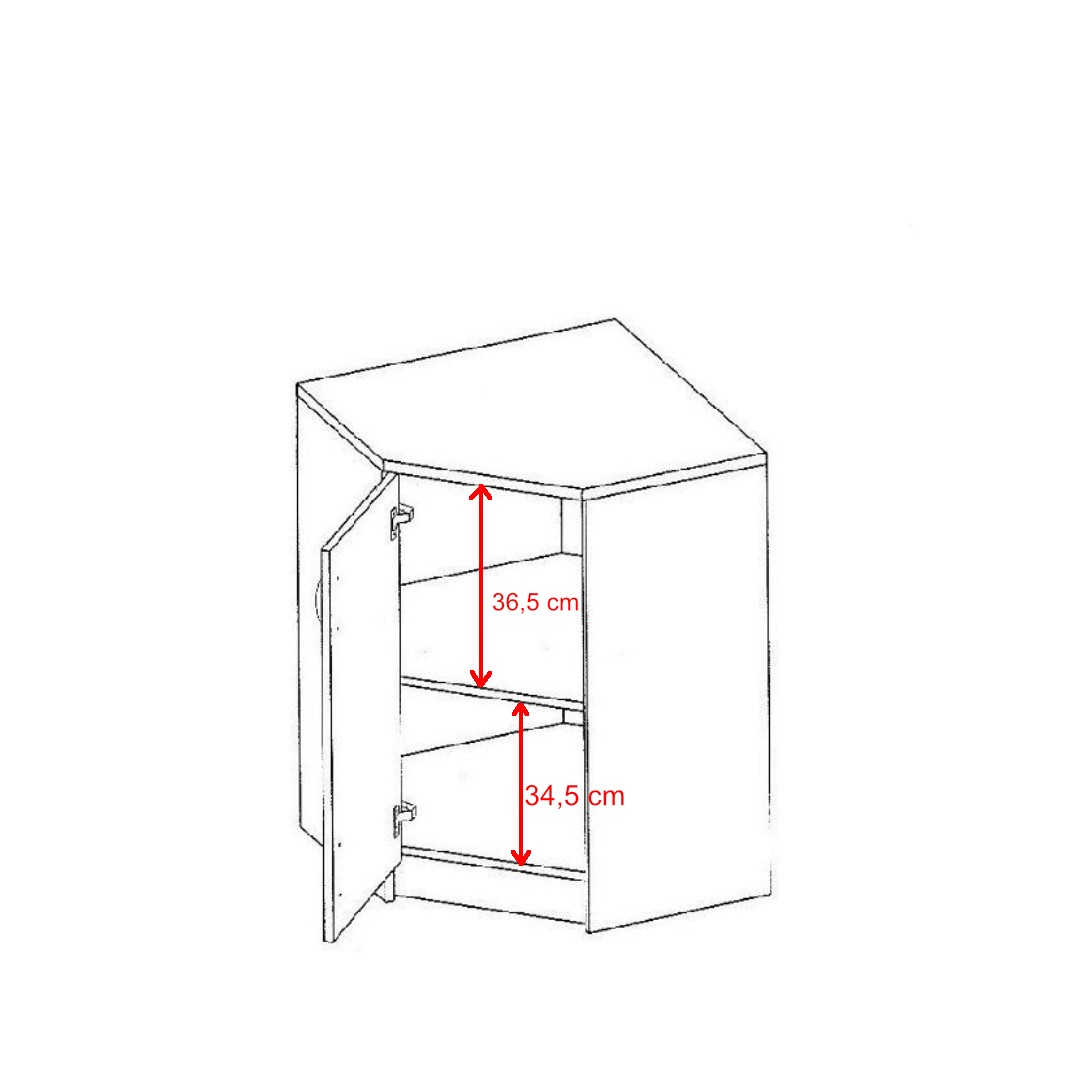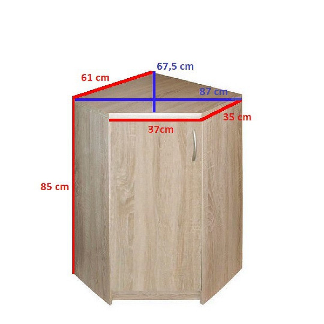 Rozměry dvířek činí 37 cm, boční stěny jsou široké 35 cm a na zadní straně je skříňka zkosená, což jí umožňuje perfektně zapadnout do rohového prostoru.