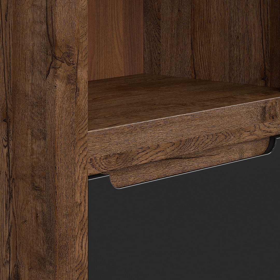 Regál Ruso REG1D je vyroben v barevném provedení dub april/černý mat. Jednotlivé police v regálu nepřetěžujte. Maximální nosnost je do 4 kg.
