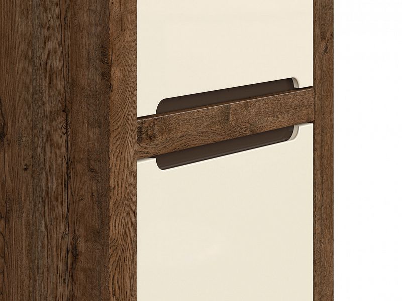 Barevné provedení je dub april/perleťový lesk. Univerzální provedení pravé nebo levé strany dvířka, vám dává možnost přizpůsobit vitrínu podle vašich potřeb (panty si upevníte při samotné montáži, na jakou stranu potřebujete).
