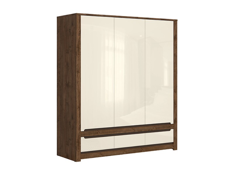 Šatní skříň RUSO je vyrobena z lamina. Barevné provedení je dub april/perleťový lesk.
