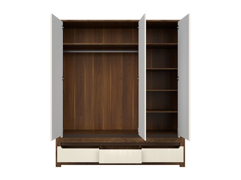 Vnitřní uspořádání skříně je v podobě polic a šatní tyče. Ve spodní části jsou k dispozici zásuvky. Pro snadnější manipulaci jsou k dispozici zapuštěné úchyty.