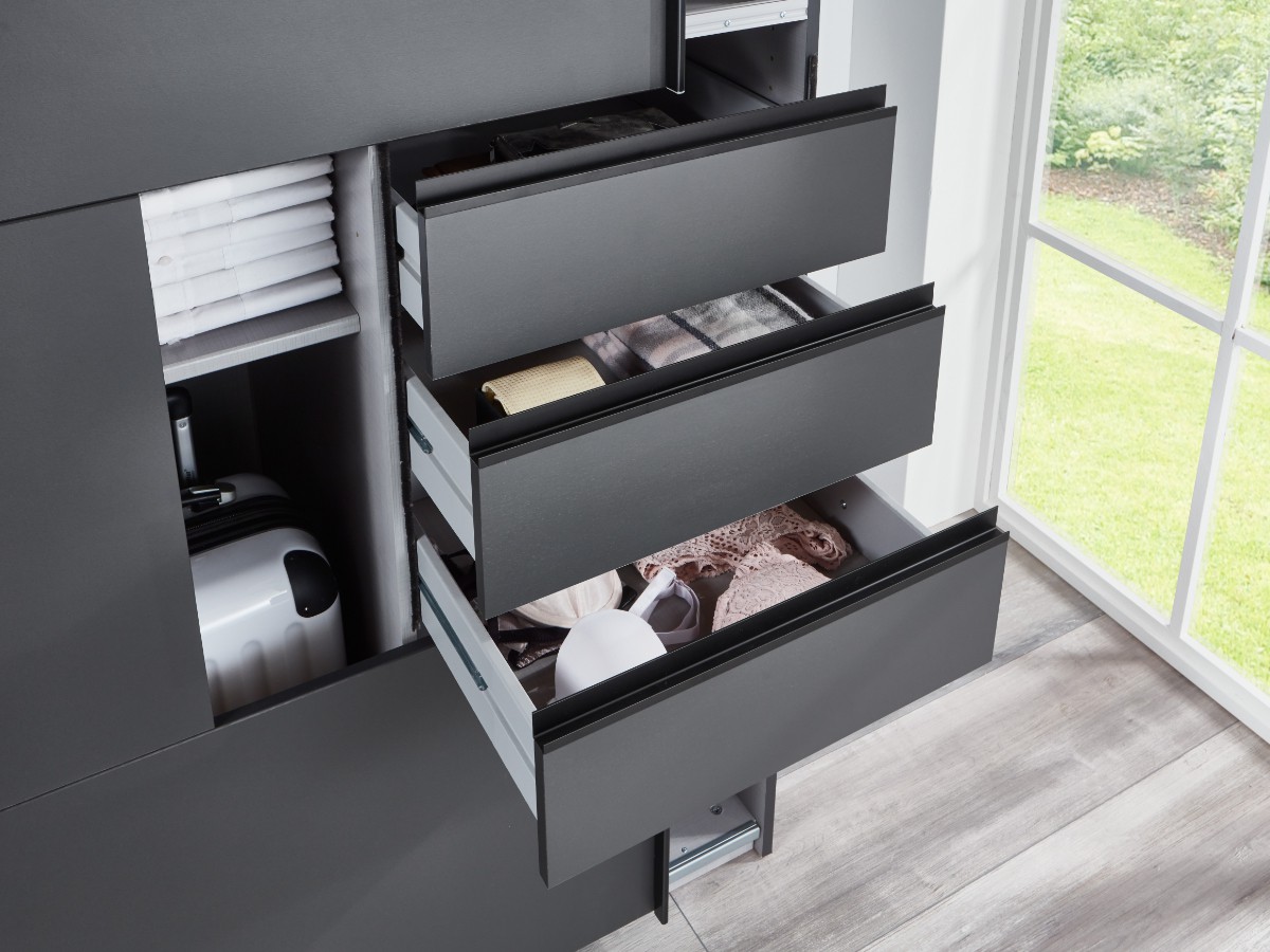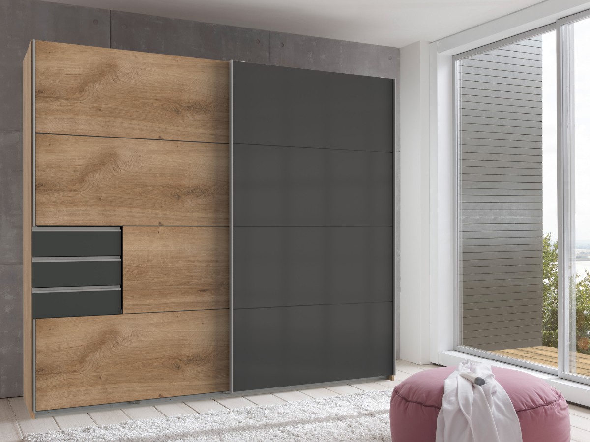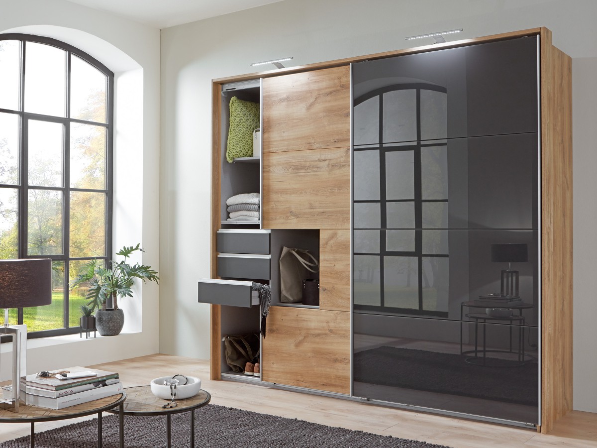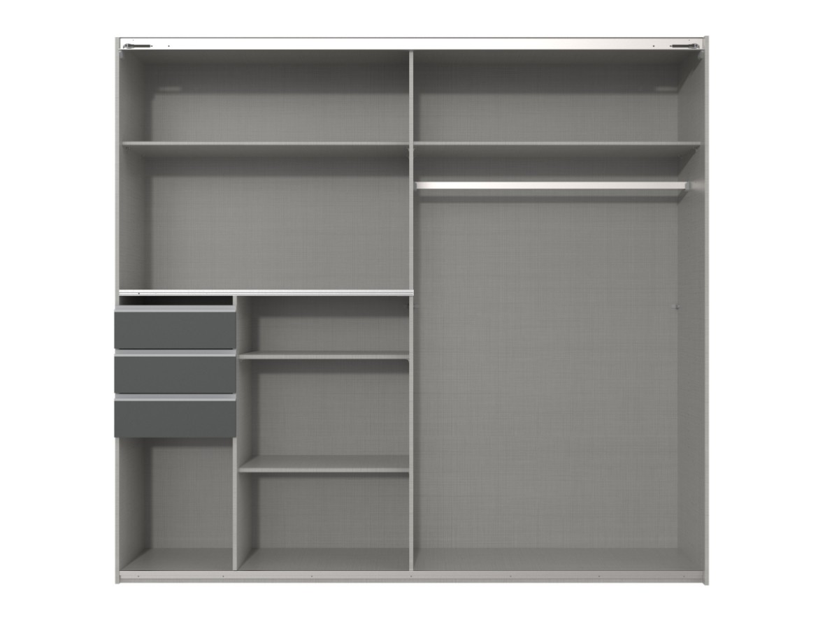 Její vnitřní členění je zhotoveno velice prakticky. Kdy je k dispozici část policová a část s šatní tyčí. Díky tomuto uspořádání se vejde do skříně opravdu mnoho oděvu a vy tak již nebudete řešit problémy, kam veškerý oděv umístit. Na drobnosti je pak k dispozici šuplíková část.