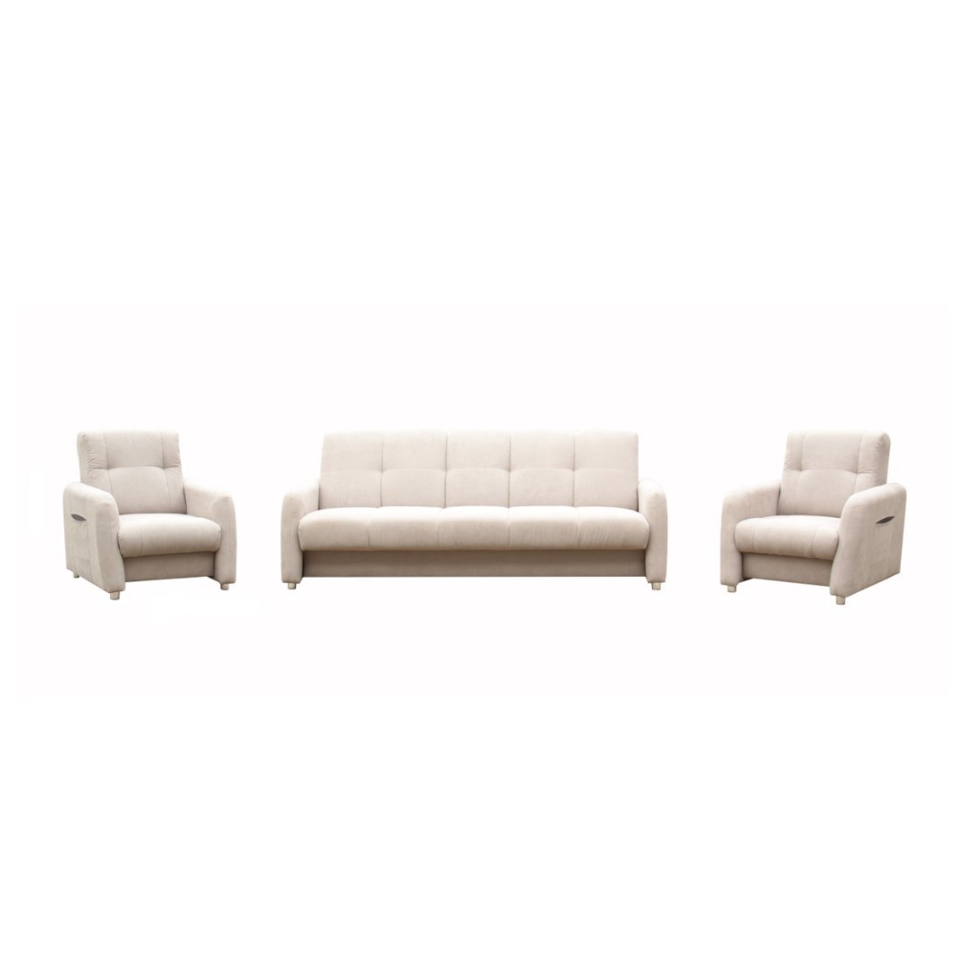 Sali sestava zaručuje vynikající pohodlí díky mimořádně komfortnímu sedáku a opěradlu. Sedačka je vybavena kombinací vlnité pružiny a bonnel pružin, což zajišťuje optimální podporu a pohodlí. Rychlý rozklad klik klak systému umožní snadno transformovat pohovku na plochu pro spaní. Boční dekorační kapsa dodává designu pohovky ještě více elegance.