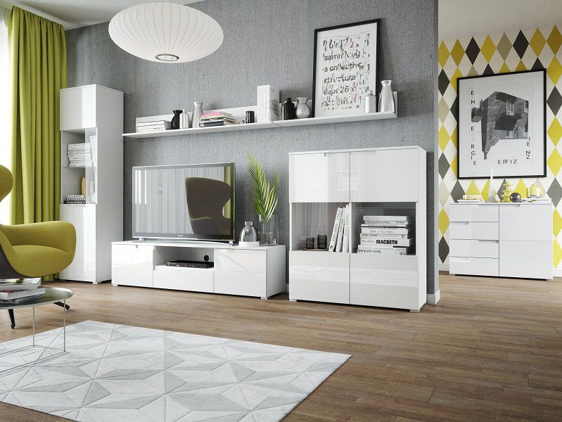 Barevné provedení skříně Samoa 13 je bílý mat/bílý lesk. Díky tomu se bude skříň snadno kombinovat s již stávajícím nábytkem.