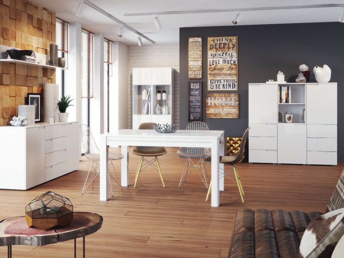 Sestava nábytku ze série Samoa je jako stvořená pro domov, který působí elegantně a luxusně. Nábytek je v bílé barvě s leskem a úchyty jsou jemně vyfrézované aby nepůsobily rušivě.