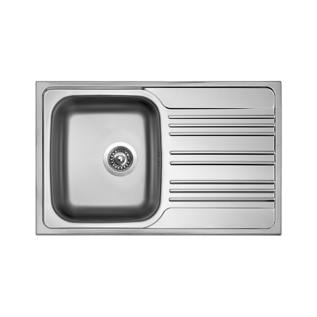 SADA - NEREZOVÝ DŘEZ + PÁKOVÁ BATERIE. Nerezový dřez SINKS STAR 780 je vyroben z vysoce kvalitní chromniklové nerezové oceli, která nabízí vysokou odolnost, dlouhou životnost a minimální nároky na údržbu. Tento materiál zaručuje, že si dřez udrží svůj čistý a elegantní vzhled i při každodenním provozu. Dodáváno včetně sifonu s odbočkou na myčku + montážní sada. Síla plechu je 0,6 mm. Praktická odkapávací plocha poskytuje prostor na sušení nádobí. Matné barevné provedení. Bez vyvrtaného otvoru na baterii. Vhodné jako levé i pravé provedení...