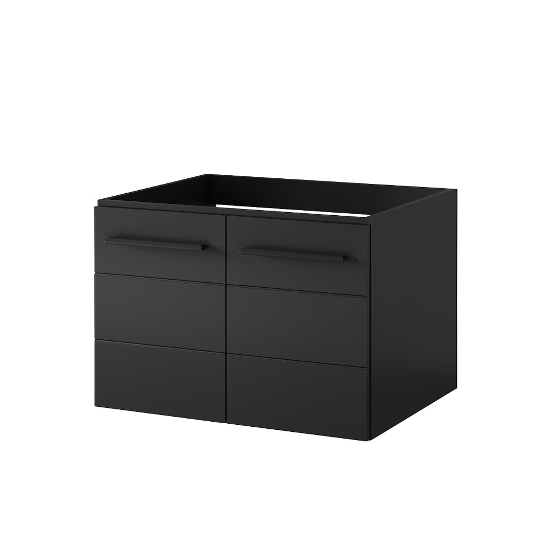 Skříňka je vyrobena z lamina - korpus, dvířka z MDF v černé matné barvě. Za dvířky se ukrývá police pro snadnější přehled v ukládaných věcech.