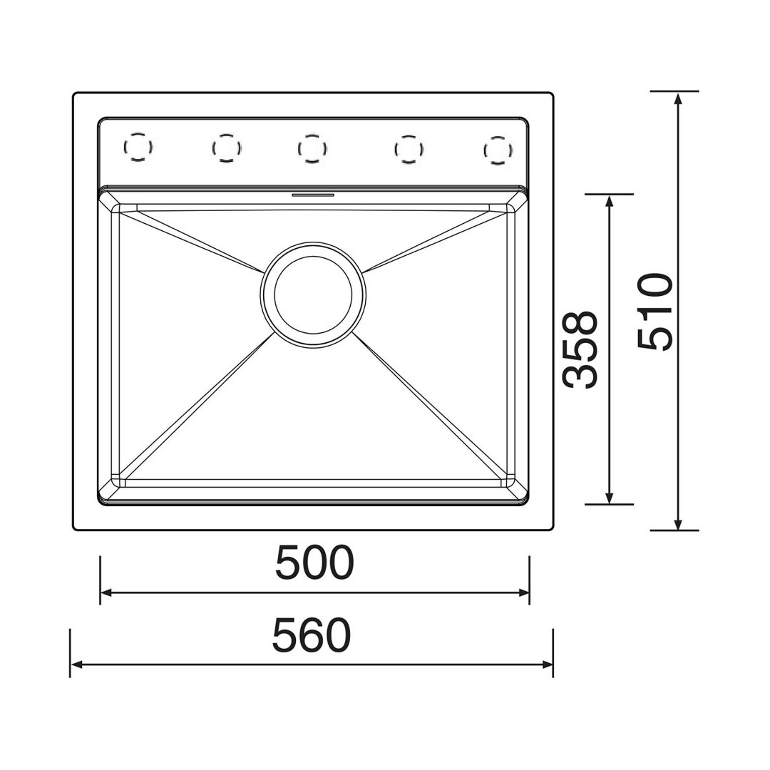 Dřez má předvrtané otvory pro baterii, které jsou zespodu připravené k jednoduchému dovrtání — samotný otvor není úplně vyvrtán, aby bylo možné dřez přizpůsobit vašemu konkrétnímu požadavku. Zdarma můžeme nechat otvor vyřezat, napište do poznámky při objednání. Barevné provedení je v odstínu černé/šedé - Pureblack č.26.