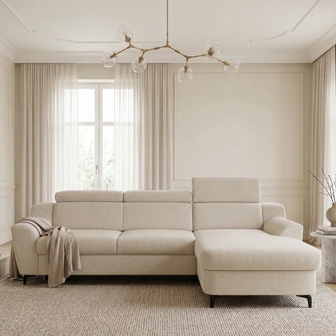 Výplň sedací soupravy je z polyuretanu, zajišťuje ideální pohodlí a zároveň tvarovou stálost. Sedák ve výšce 43 cm umožňuje posed, ze kterého se snadno vstává. Standardní hloubka sedu 55 cm. Doplněno o prostorný otoman s hloubkou 130 cm – ideální místo pro filmové maratony nebo odpolední šlofík. Díky 10 cm vysokým nožkám působí sedačka lehce a elegantně. Navíc tento prostor oceníte při úklidu – pod sedačku se snadno dostane většina robotických vysavačů. V případě, že potřebujete občas ubytovat návštěvu, skrývá tato sedačka praktický rozklad, který vytvoří velkorysou spací plochu o rozměrech 123 x 212 cm.