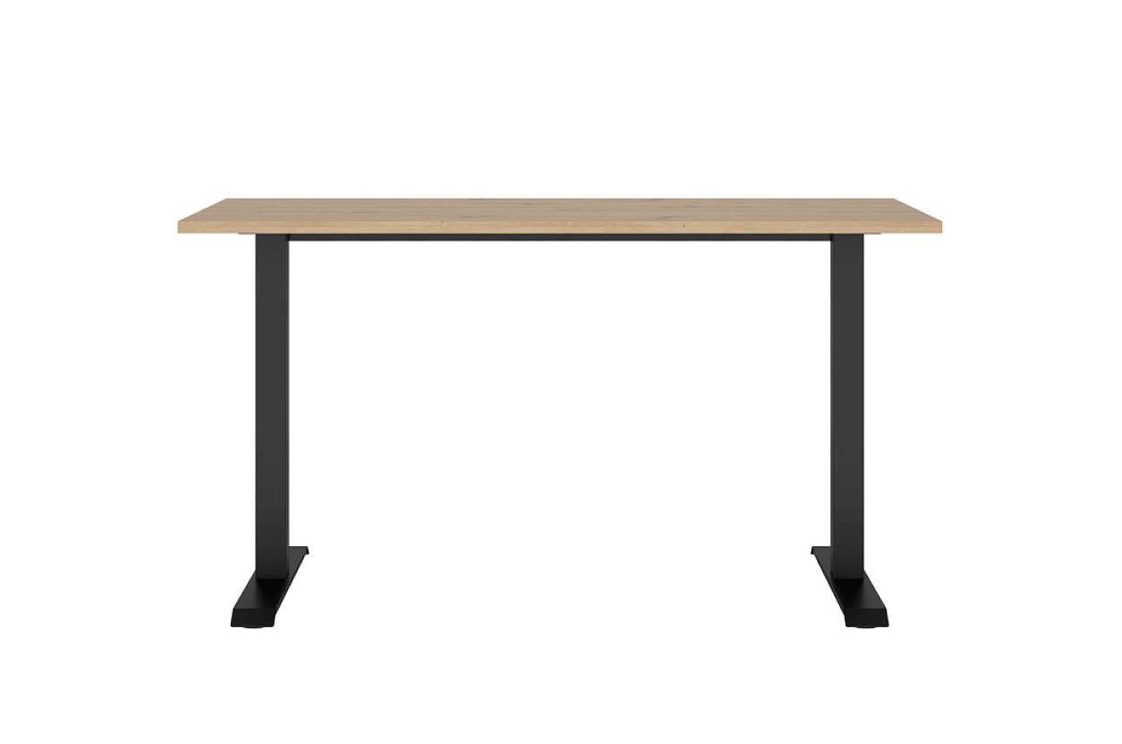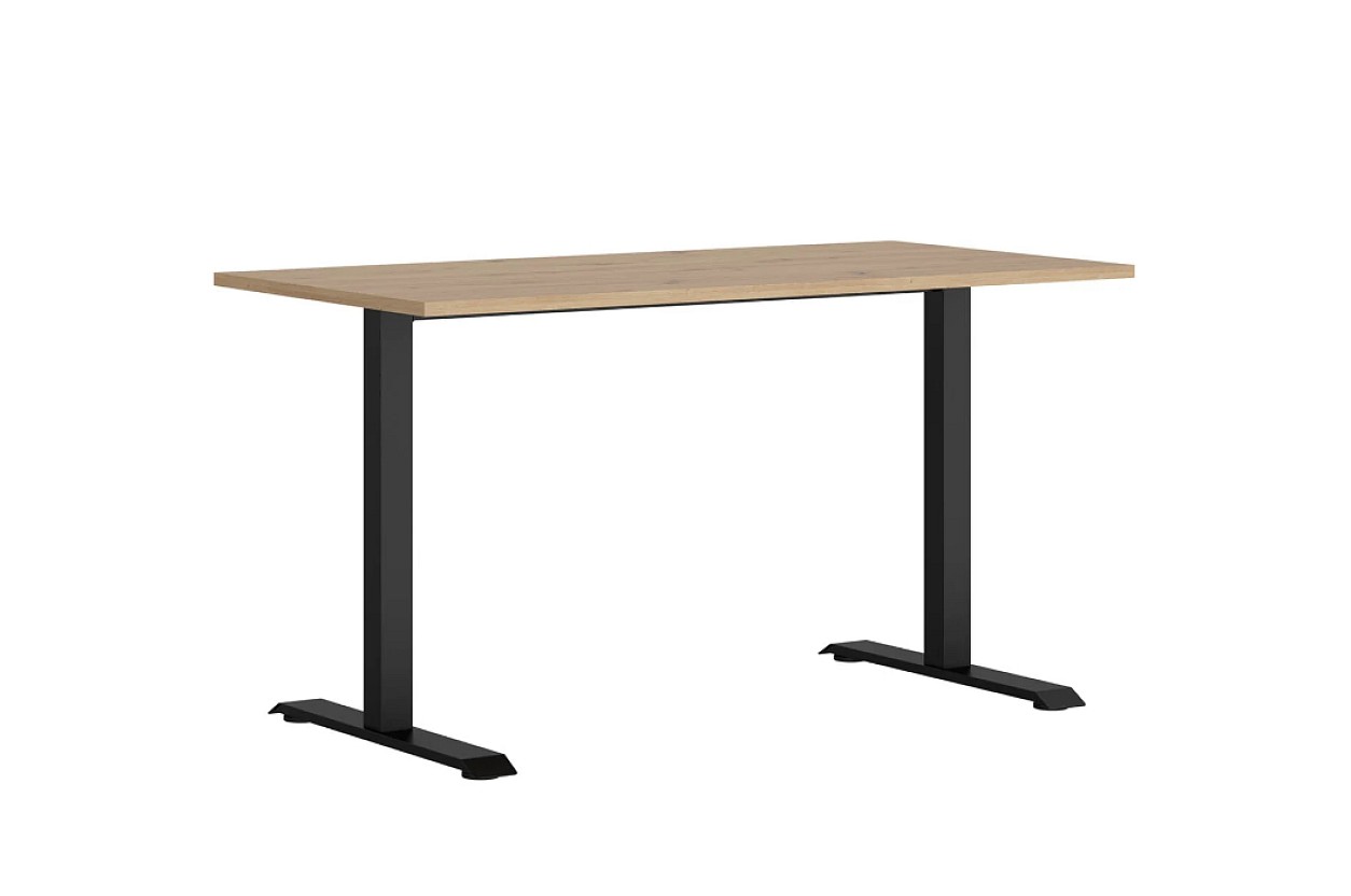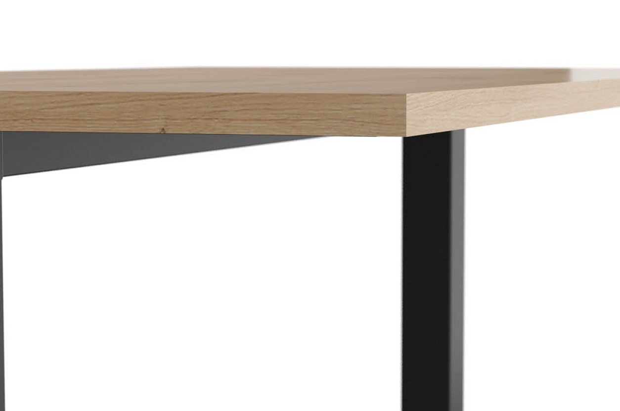 Industriální styl podtrhují kovové nohy s podnožím zajišťující přizpůsobení zakřivení podlahy a lamino o síle 22 mm. Vrchní deska stolu je odolná vůči poškození a poškrábání. Její barevné zpracování je v tónu dub artisan.