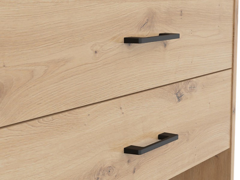 Nábytek je vyrobený z vysoce kvalitního lamina odolného vůči poškrábání. Jeho barevné provedení je v tónu dub artisan.