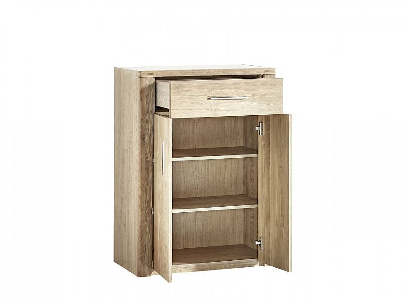 Úložný prostor je v podobě jedné zásuvky a dvou polic umístěných za dvířky.