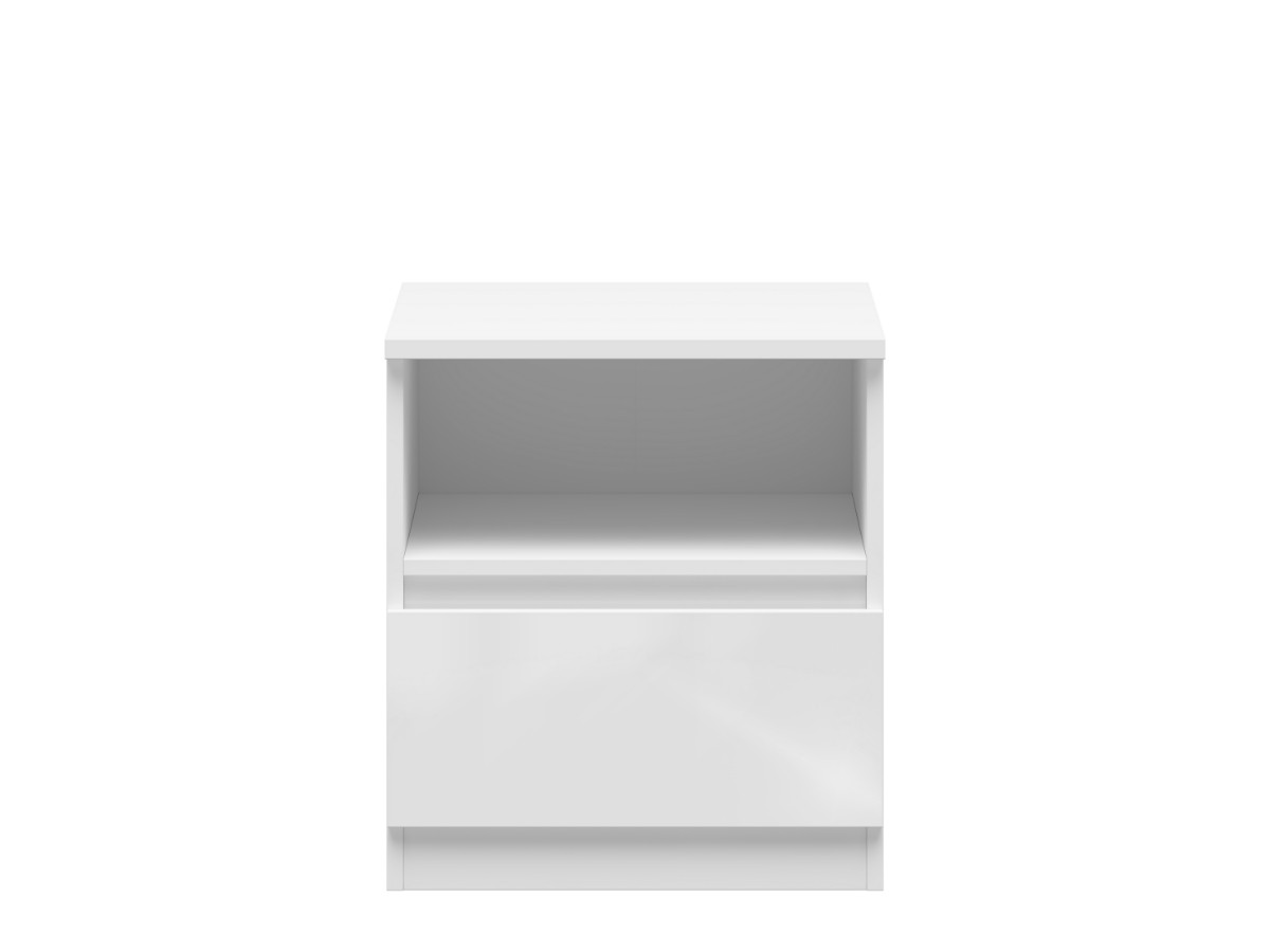 K dispozici má jednu otevřenou polici a zásuvku vhodnou pro uschování drobností. Zásuvka je bez úchytky.