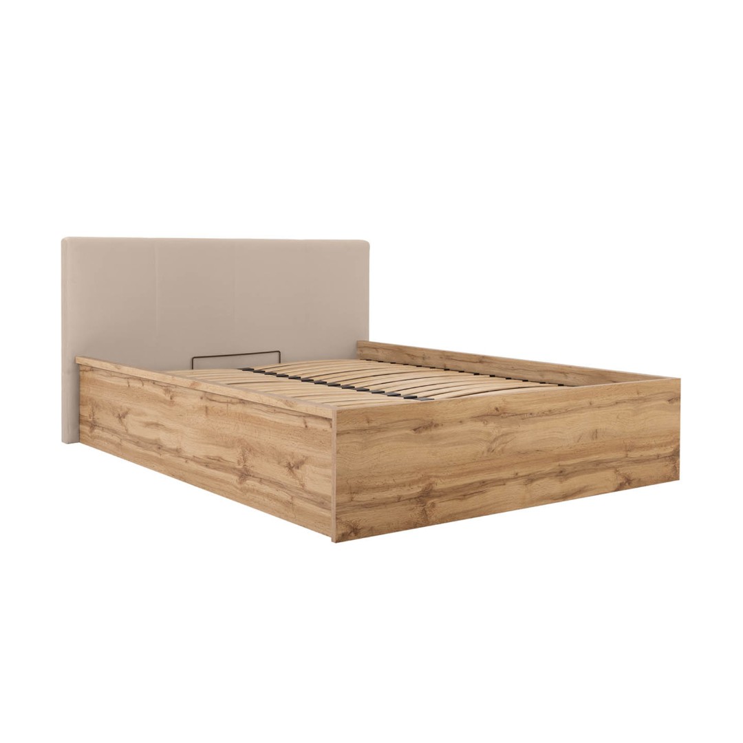 Konstrukce postele je z lamina v barvě dub wotan. Čalounění je v béžovém provedení MODONE 9702.