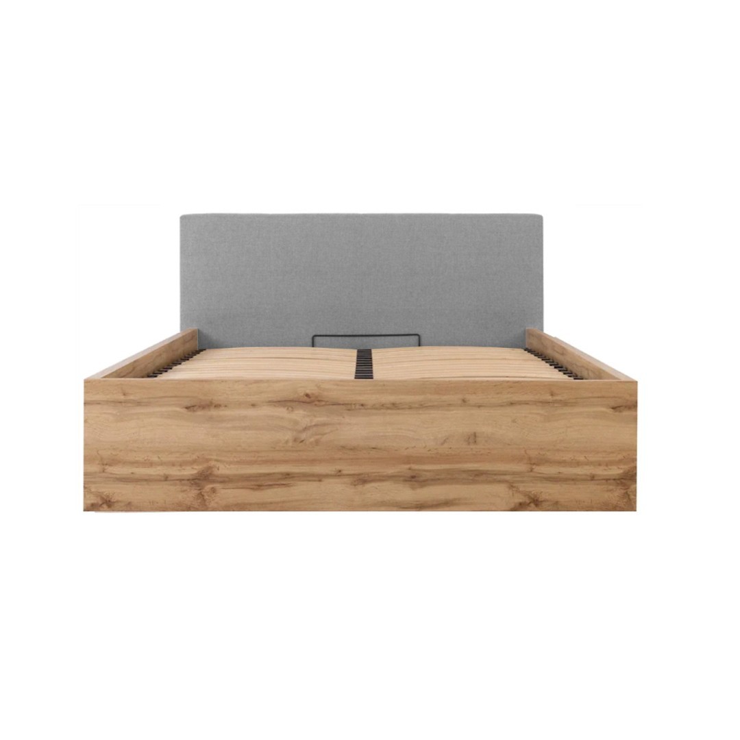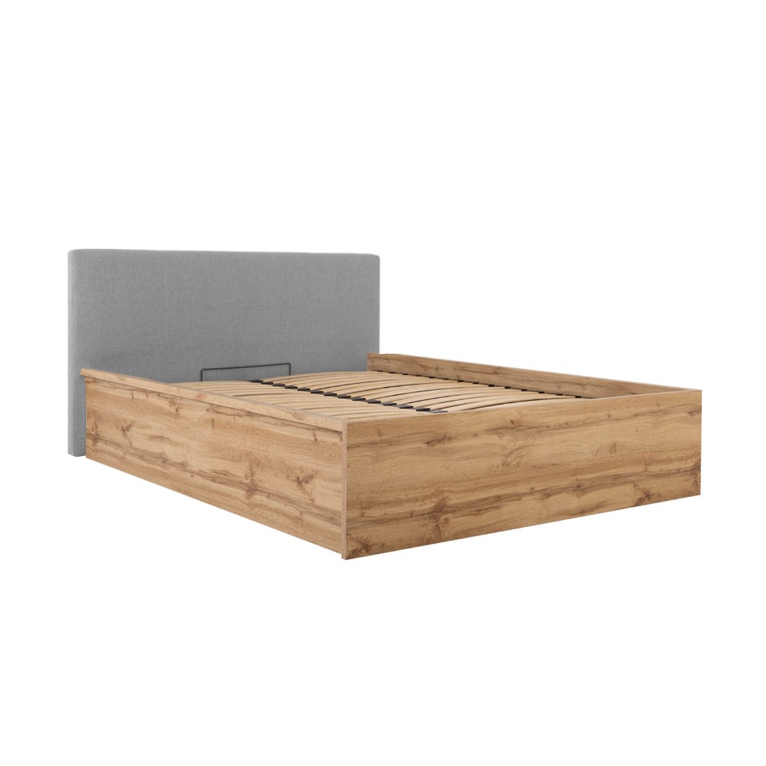 Konstrukce postele je z lamina v barvě dub wotan. Čalounění je šedé v látce Inari 91.