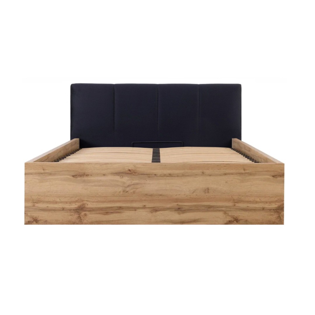 Konstrukce postele je z lamina v barvě dub wotan. Čalounění je v černém provedení Solar 99.