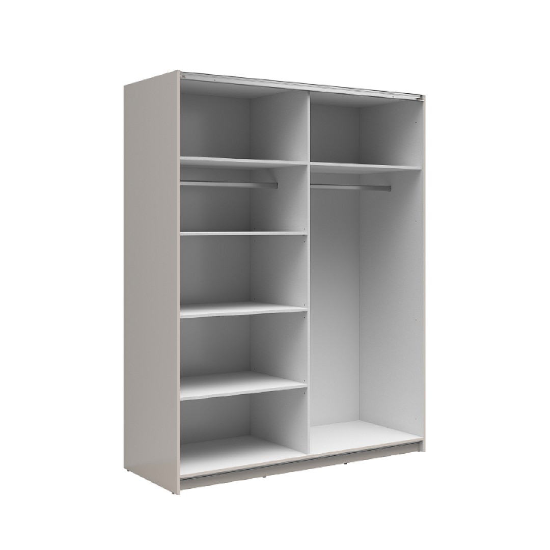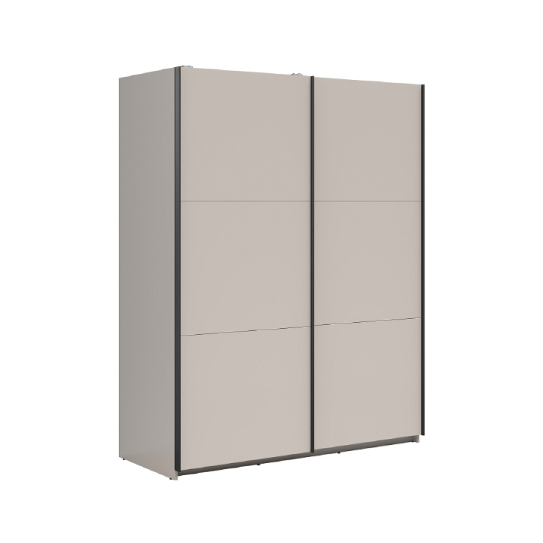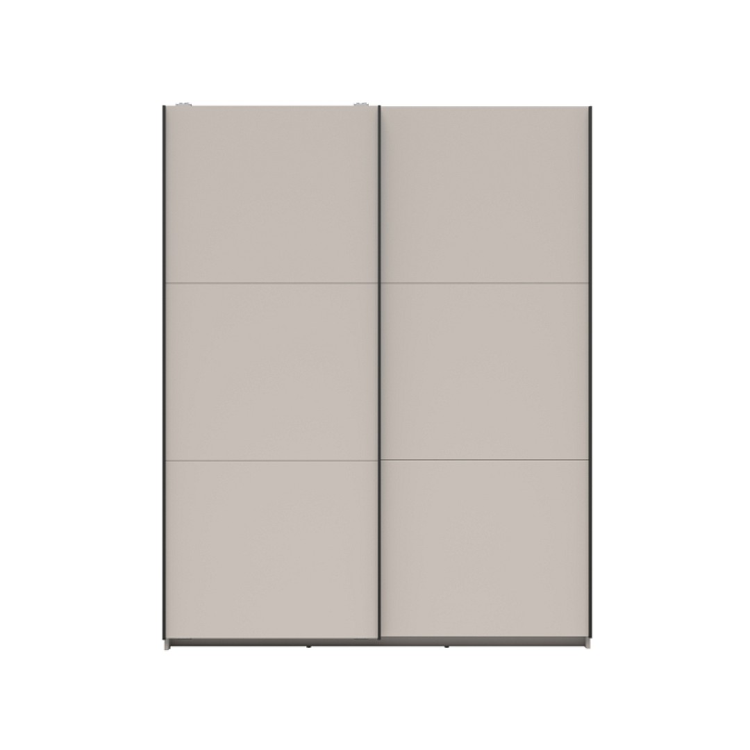 Barevné provedení skříně je v tónu kašmír, který je velice populární. Tato barva vnáší do interiéru teplý a harmonický nádech. V nabídce také v dalších provedeních viz barevné varianty. Vnitřek je potažený plátnem v šedém tónu. Pro uložení oděvu jsou k dispozici ve skříni šatní tyče a police. Police je možné kdykoliv vyjmout a mít tak pouze šatní tyče pro zavěšení košil, bund nebo kabátů.