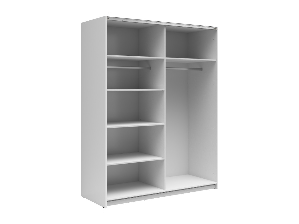 Šatní skříň TETRIX SZF/153/M je vyrobená v bílém lesku. V nabídce máme k dispozici také další barvy. Vybrat si můžete z barevných variant. Laminovaný povrch je odolný vůči mechanickému opotřebení, snadno se udržuje. Vnitřní prostor je potažený plátnem šedé barvy s jemnou strukturou.
