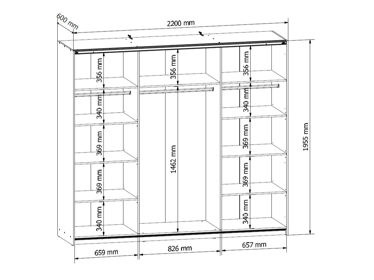 Za dveřmi máte k dispozici úložný prostor v podobě polic a šatních tyčí. Toto členění vám umožní snadno uložit veškerý váš oděv.