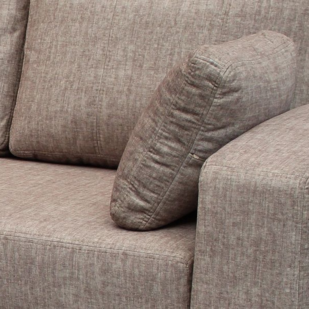 Pohodlně se můžete o tři velké opěrné polštáře. Dva menší dekorační polštářky ve stejném potahu jsou součástí sedačky.