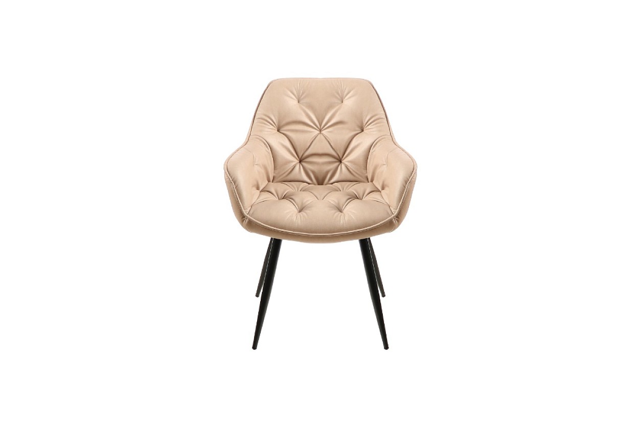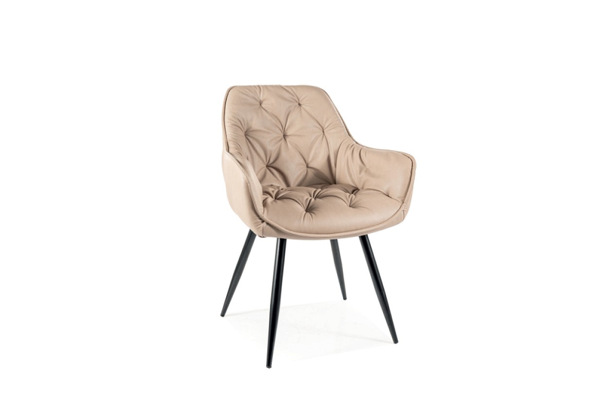 Jídelní židle TRENDY CHERRY vnáší do prostoru moderní design. Upevněno na kovových úzkých nožkách černé barvy. Sedák i opěrák jsou polstrovány a čalouněny ekokůží s dekoračním prošitím zajišťující moderní vzhled a pohodlí při sezení u jídelního stolu. Barevné provedení je v béžové barvě ECCO BUFFALO 01.