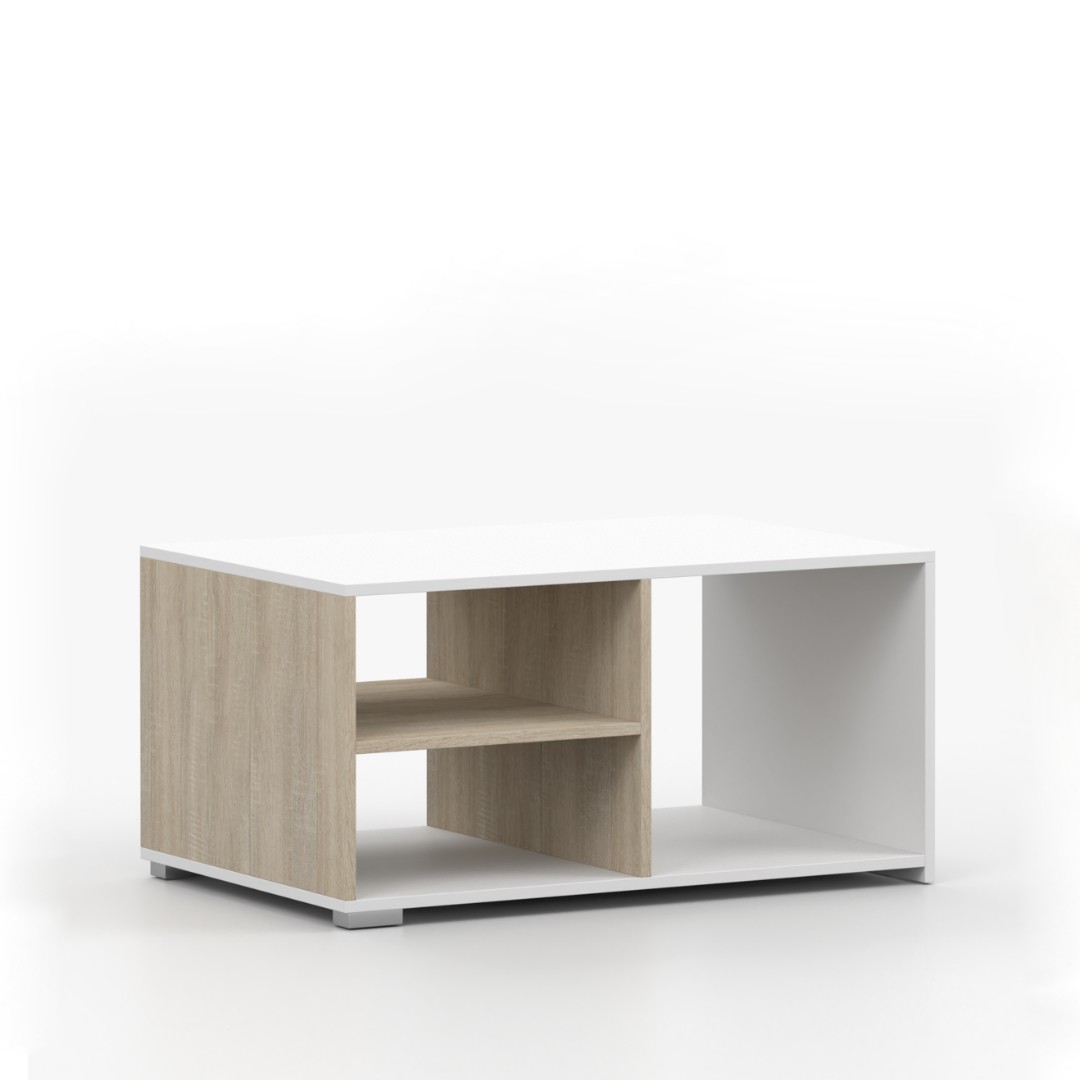 TRENTO NEW 1T konferenční stolek je stylový středobod vašeho obývacího pokoje. Hledáte rovnováhu mezi estetikou a praktičností? Tento konferenční stolek v populárním dekoru dub sonoma/bílá sází na čisté geometrické linie, které osvěží každý interiér...