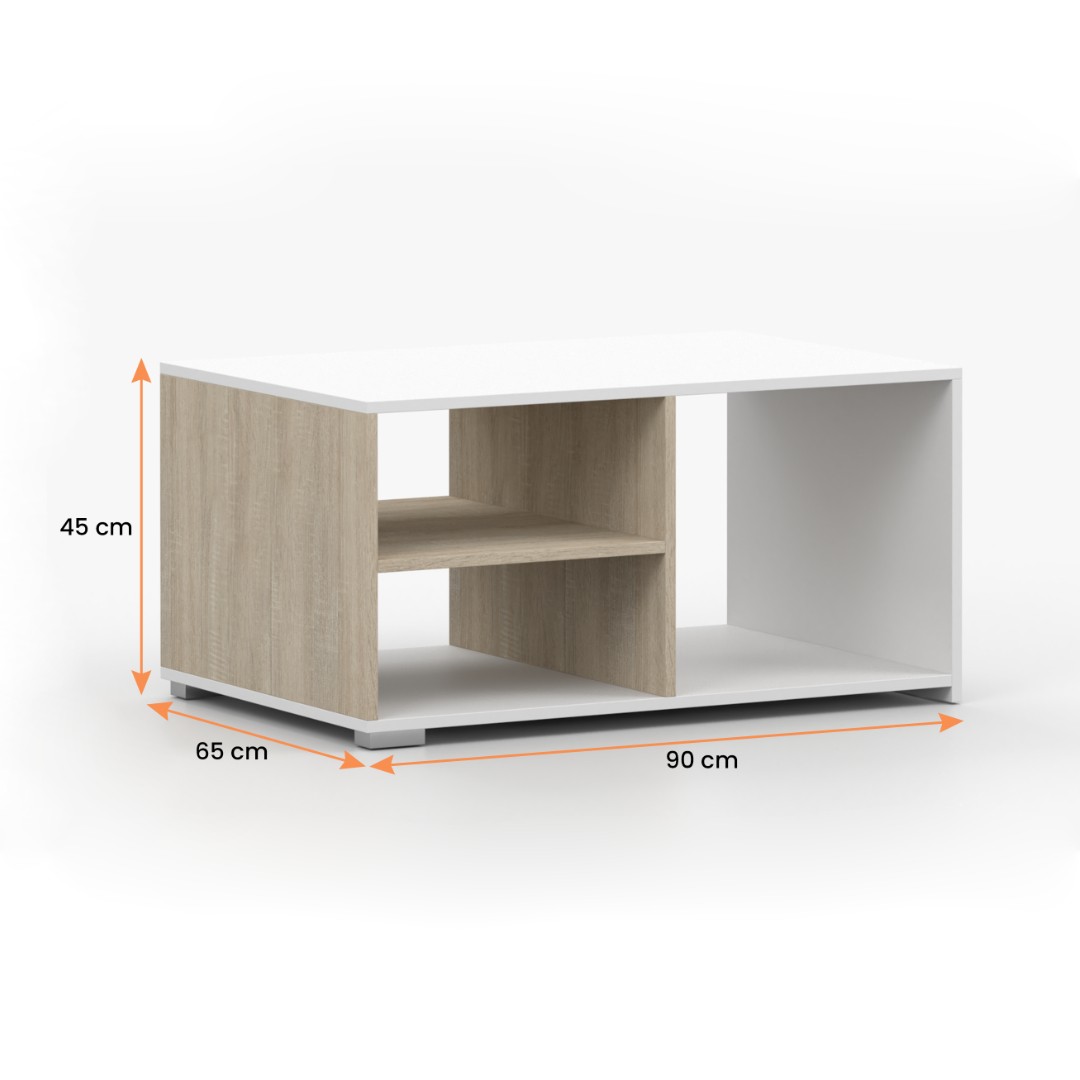 Díky promyšlenému systému otevřených polic získáte štědrý prostor pro vše podstatné – od oblíbeného čtení až po dálkové ovladače. Robustní konstrukce zaručuje stabilitu, zatímco nadčasový design se postará o to, že váš obývací pokoj bude působit uspořádaně a moderně po mnoho let. Ideální pro uložení drobností nebo dekorativních předmětů.