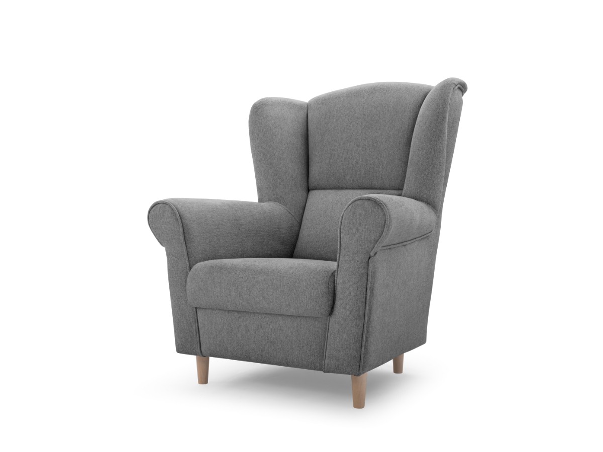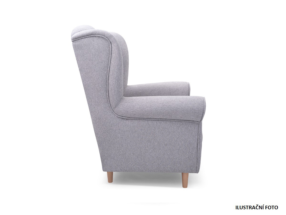 Barevné provedení křesla VAREZZA je v tmavě šedém tónu - AVRA 17 - hrubá látka. Nožky jsou vyrobeny ze dřeva - buk.